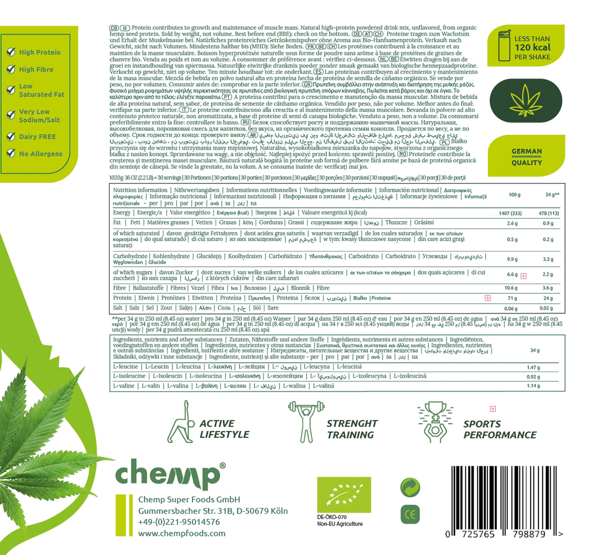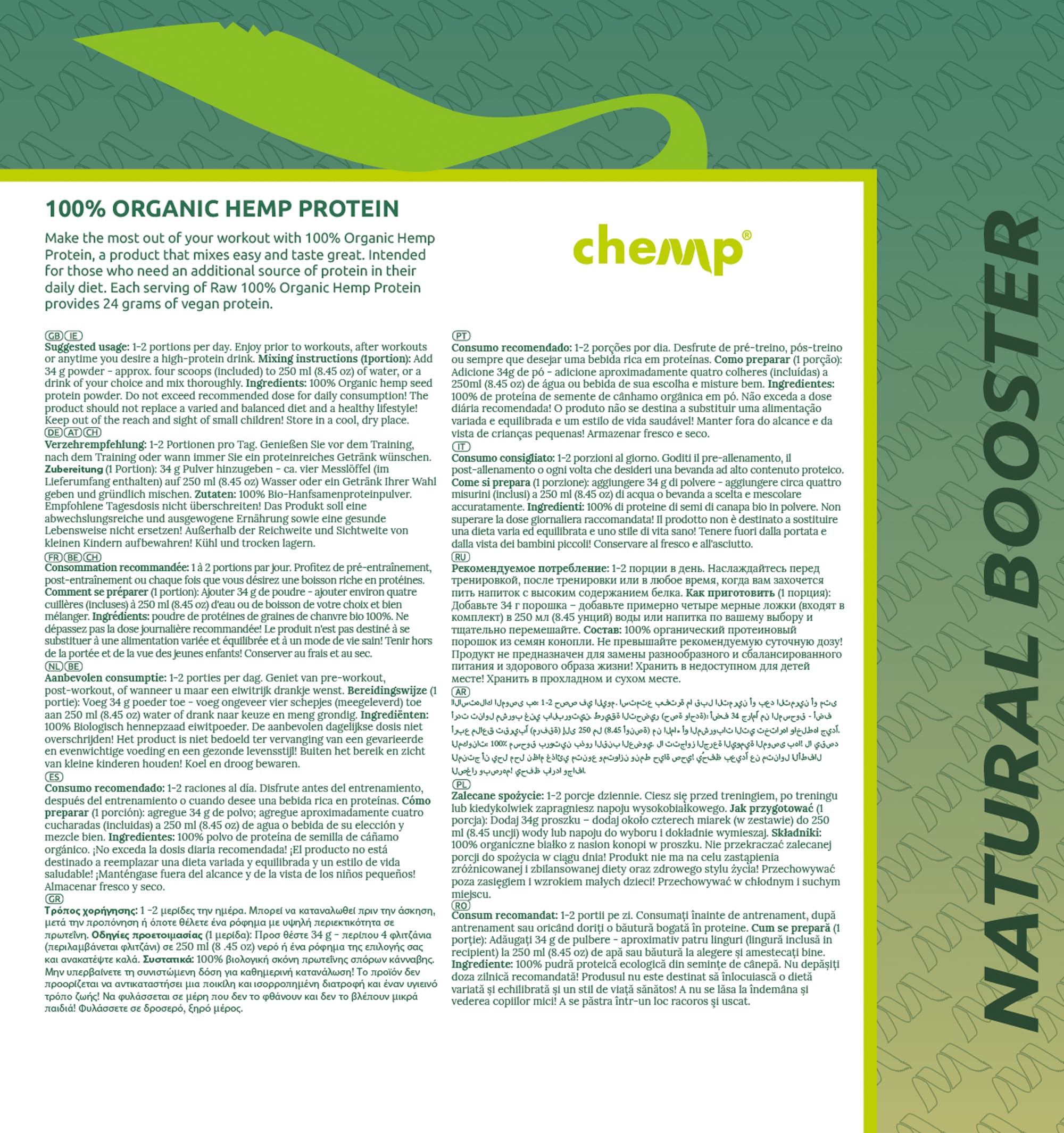 Chemp Pure 100% BIO Hemp Protein Powder este o pudră proteică 100% naturală din semințe de cânepă, ideală pentru cei care caută o sursă vegetală de proteine completă. Cu 24g de proteine per porție, ajută la creșterea și menținerea masei musculare, în timp ce 3,5g de BCAA susțin recuperarea musculară și reduc oboseala.