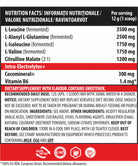 L-leucina (fermentata), l-alanil l-glutamina (fermentata), l-izoleucina (fermentata), l-valina (fermentata), citrulina malat (2:1), CocoMineral®, vitamina B6, regulator de aciditate (acid malic), indulcitori (sucraloza, acesulfam K), agenti de aromatizare, emulgator (carboximetilceluloza sodica), colorant natural (pudra de sfecla rosie), citrat de sodiu dihidrat.