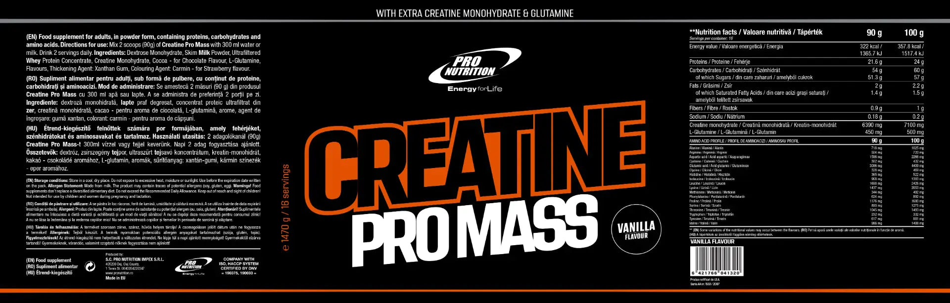 Creatine Pro Mass Supliment Pentru Recuperare Accelerată 1470g - Vanilie